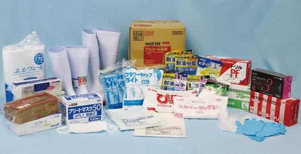 スーパーマーケットから食品工場まで幅広くご要望にそった衛生関連資材をご提案し、安心・安全をサポート致します。 マスク(食品用・医療用)、キャップ、手袋、洗剤各種、アルコール・除菌剤、掃除用品、カウンタークロス、エプロン・前掛け、ユニフォーム・シューズ、医療介護用品など。 |